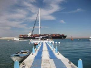 11.5.2011 we start the canal transit .Yachts cannot do it in one day so we have to sop at another yacht club in Ismailia on lake Tismah about half way .We had a pilot on board to guide us and it was a fascinating journey along quite a feat of engineering .the canal passes through two lakes Little Bitter and Great Bitter lakes then Timsah. Ismailia yacht club is similar to Port Suez and after checking the weather in the Mediterranean sea we decide to stay an extra night to avoid bad weather. Two other yachts decide the same but a very large German yacht who kindly shared several beers with us (our stocks are dangerously low by now ) decide go ahead.