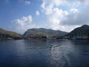 We had left Baringo on the hard in Gocek for the winter and enjoyed a truly wonderful skiing season in Chamonix with plenty of snow and lots of visitors.We visited Gocek in February to find the boat in rather a mess as the work was underway and was in its most destructive phase.We believed all would be completed by the end of April apart from the final fine tuning.Sadly this was not to be, and after a visit to Hong Kong for John’s work when we returned to Baringo there was still much to be done.We had had a new Cummins –Onan generator fitted,oceoprotec antifouling, a new toe rail to try for the fourth time to stop the starboard leaks,and many other smaller jobs one of which was installing a plastic box to protect the wiring on the port side. It was this interference which really caused most of the problems and I don’t think the wiring will ever be the same again,many wires were cut and left unconnected and the cockpit chart plotter was wired through the saloon light switch! We had been unable to discover why the chart plotter was intermittently faulty and this error might have remained unsolved by us but luckily an electrician worked it out, much to his surprise as well! Once back in the water white smoke was billowing from the exhaust for which many explanations were proffered but finally the turbocharger and cylinder heads were removed and resealed with some improvement although not a complete cure.We think the damage was due to the many days of motoring at slow revs.during the convoy but as we had to go at the speed of the slowest boat we had no choice , perhaps a small price to pay for escaping a visit to Somalia.John noticed just before departure that one of the steering cables was frayed and according to all advice this meant a cable change so while they were trying to cure the white smoke we decided to have a new cable .We had thought they would do both automatically but only the frayed one was done.The whole experience in Gocek was very stressful and frustrating but we did learn a lot about the boat and we managed to enjoy the Turkish food and wine and regular nocturnal walks along the Gocek promenade.