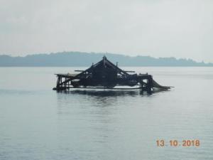 We had no moon initially but wonderful starry night skies and we managed the usual watch system uninterrupted by crises. We had a visit from dolphins , always a great pleasure, and we continued our way west jibing to make the best course . The wind began to die by13th October and we had to start to make calculations about speed to arrive in Saumlaki in the Tanimbar Islands in daylight .This was our chosen port of entry into Indonesia, we had submitted numerous forms before departure which we hoped would speed up the process but as we discovered this was in vain .We also had the added problem of not wanting to stay in Saumlakia for the weekend waiting for the offices to open on Monday. Although Indonesia is a Muslim country the office hours are the usual western ones,so we decided to spend Saturday 13th October resting at sea floating along at about 2kts with just the little jenny out .It was a very relaxing day but there was a certain amount of sail flapping so much so that the shackle on the foot of the little jenny shook off and had to be replaced. On Sunday at 03.15 we started the motor as the wind did not appear and we needed to reach Saumlaki by dawn which we did and were happy we had not made a dark approach as once in the bay there were several substantial fish aggregating devices (FADs) almost certainly unlit. We were looking for the anchorage recommended in the pilot book but we discovered that the charts are inaccurate and while searching for the recommended anchoring spot and simultaneously avoiding a small vessel we ran aground ! Luckily the motor came to the rescue again and we anchored in 17m further out!