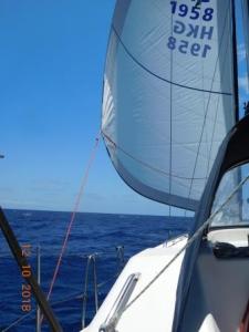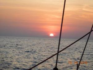 We had an excellent start with a pleasant easterly wind across a flat turquoise sea. The sea built up a little as we got further out and we had to jibe our way along to keep on course but this was easy as we only had the big jib and no mainsail. The sunsets were wonderful as were the dawn, such as are only seen at sea so we really appreciated their beauty as they may be amongst the last we will enjoy.
