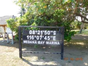 A 04.00 start was needed to reach Medana Marina ,we had half a tank of diesel so felt secure with that but no sooner were we out of the peaceful anchorage than the winds started at 30 kts ,presumably the last of the night’s land breeze which we were very pleased to have missed . We sped along the north of Lombok a dramatically high volcanic island and I went below for a short rest after the early start only to be called as John had the very scary and unpleasant experience of seeing a snake coming from the deck into the cockpit! After realising he was not hallucinating we set to finding a way to kill it ,we had no choice. Luckily it took refuge in the halyards and remained stationary and John did the deed with the end of the wooden oar which we had ready as self defence against boarders . Had the snake got below on board life would have been extremely tricky. We had recently read of the tragic death of a young British man from a sea snake bite so this one was not a welcome visitor and we could only suppose it had climbed up the anchor chain. Sea snakes are some of the most venomous in the world. The wind as usual died by the middle of the day but revived again as we approached the marina and we were motoring during the afternoon into a 30kt headwind presumably a sea breeze this time .There was confusion again with the electronic charts but I- sailor was the most accurate, in fact the marina was not mentioned at all on Navionics and the AIS signal from one of the yachts in the marina was in a different bay! All very confusing but we could see all the masts so used eyeball navigations to get in. We had a few attempts at securing the mooring buoy in the strong wind but were tied up before dark and happy to be there and in addition we had received a welcome e-mail from the marina manager.