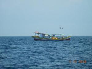 We were passing between P.Belitung and Kalimantan keeping closer to Kalimantan and there is a line of reefs and shoals extending eastward off Belitung where again there was large fleet of fishing vessels. Actually passing through them was not as difficult as we had anticipated as they moved out of our way once they had seen us and all we saw were lit ,some scantily though. We had the usual mixture of sailing and motoring, probably more of the latter so refuelling was becoming imminent and we decided that doing this in the Archipelagic Sea lane was foolish and made a course for P.Serutu to anchor and do the refuelling in peace and out of danger. November was ushered in with a serious lightning storm in the evening after a very sultry day so it came as no surprise but luckily neither wind or rain was that difficult and we escaped a direct hit.
