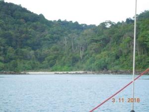 On the morning of 2nd November we reached P.Serutu near P.Karimata just west of Kalimantan and anchored in a very pleasant bay but initially we had a NW wind blowing straight into the bay putting us squarely on a lee shore but luckily this changed as the morning progressed to SE and the anchorage became well protected. We had a restful day and completed the always unpleasant job of refuelling ,the diesel always seems to get where it is not wanted so the cleaning up afterwards is messy. We had decided to stop at two more anchorages en route to ensure arriving in Nongsa Point in daylight so the remaining journey did not seem too much of a marathon.