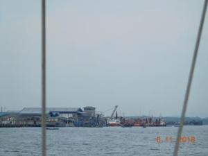 We had a choice for the next anchorage; another island bay but open to the NW or in an estuary north of Tanjung Pinang, Bintan Island in a small port but protected from the NW. We decided on the latter as the wind seemed to be predominantly for the NW now so set off early the next morning for Tanjung Pinang and arrived at the entrance to the port which is up a narrow and shallow channel early in the afternoon. All the marks were present and gingerly made our way to the anchorage spot while being overtaken by high speed ferries on all sides. It was a very busy port with vessels of all shapes and sizes crossing the estuary as there was no bridge between the two sides of the town. The water was full of garbage including lots of worrying plastic bags but we felt we had made the right choice as the NW wind blew quite strongly all night.