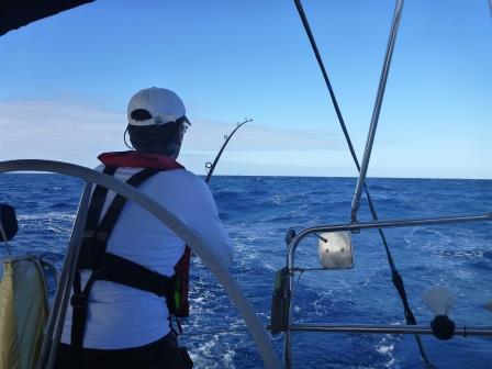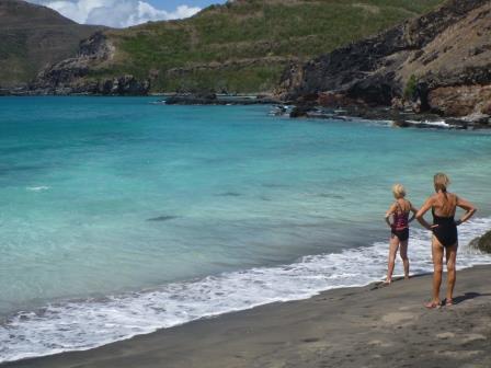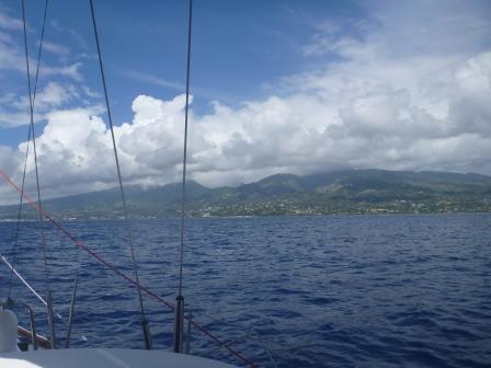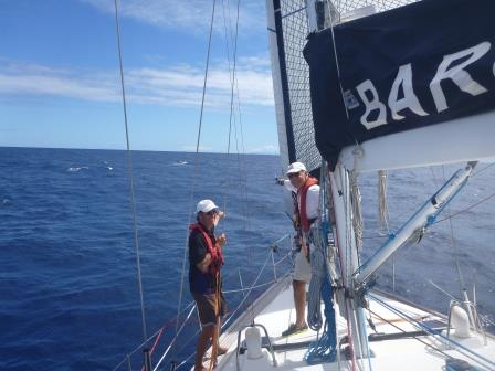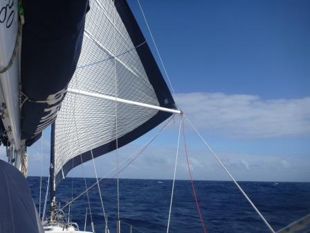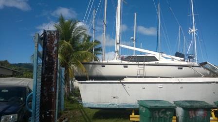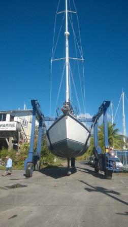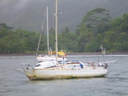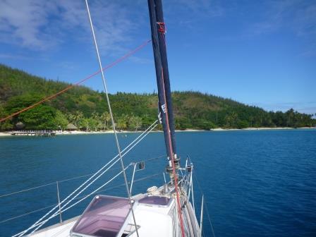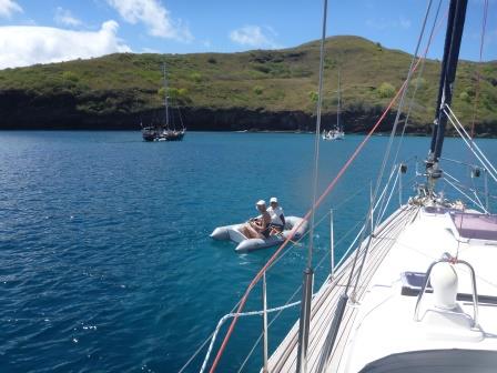The weather did not show much sign of improving by mid-week but, luckily we had the local Wi Fi hot spot was available on the mooring so we could keep in touch with the outside world and on Thursday we managed at last to hoist the big jenny. Other problems continued to surface, heads not working, a new leak from a window and more importantly the last can of Hinano …the rather delicious local beer …was drunk so definitely time to move on. Baringo cocktails were on the verge of extinction!