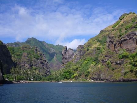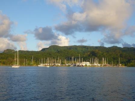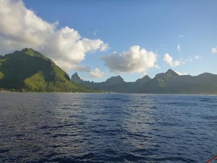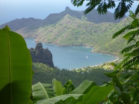 We repaired it again and left for Haamene bay on the east coast of Tahaa the other island in the lagoon north of Raiatea. It is 2 miles long and although facing the prevailing easterly winds is relatively sheltered and joy of joys more government buoys to pick up! In addition there was a nice restaurant, two supermarkets and much to our surprise the best internet yet in Polynesia in the restaurant. With so much on hand we stayed for week watching many other boat come and go. We hired a scooter for a day and travelled the island and hiked over the middle to the northern town of Patio the capital of Tahaa . We debated our next move and the chances of making it to the Tuamotos looking at the weather patterns and the charts. The weather gradually improved while we were there and the Polynesia we had come back to see returned.