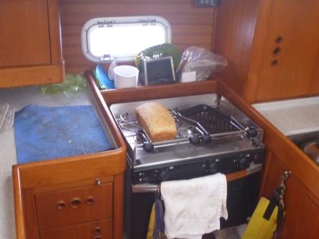 As the new week dawned the clouds,rain and wind continued. Our repaired hot water tank was returned and installed and no leaks now. The water maker pump and membrane had to be moved for this exercise so the next worry was would it work again after its unseating! Luck was with us this time and we made (drinking) water without a hitch.