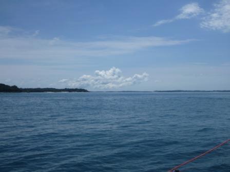 We set sail at dawn on 3.7.2014 heading NE up the Ecuadorian coast for Bahia De Caraquez about 120 nm .With no wind in the early morning we had to motor but around 10.30 the wind strengthened from the SW so a great direction and we had a very good sail until late evening .We had full main and big jenny and made excellent speed .We had the privilege of the company of many dolphins one group actually changed their southerly course to join us for about 30 minutes .Then we spotted the whales and they spotted us. It is the star of the annual migration from Antarctica to Panama .They were jumping out of the water ,spouting and flicking their tails rather too close for comfort but luckily they did not show any great interest in us after their initial examination .It was quite a spectacle .
